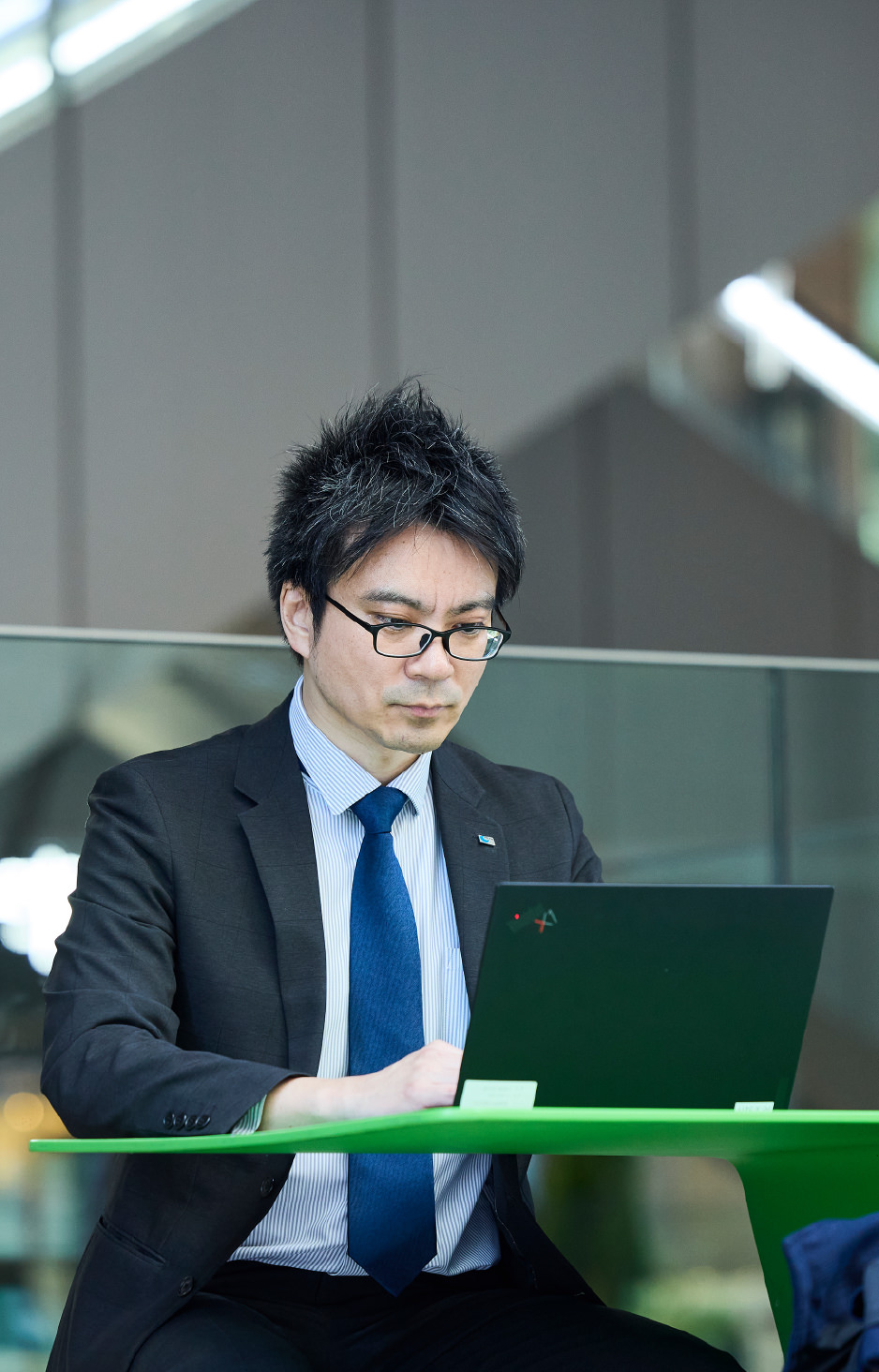 TBEは2社目。システムエンジニアの経歴を持ち、TBEに入社。その後、支店長としての経験を積み、営業企画推進本部で営業企画も経験。現在は営業企画推進本部 情報企画室 室長とAIソリューション担当部長を務める。